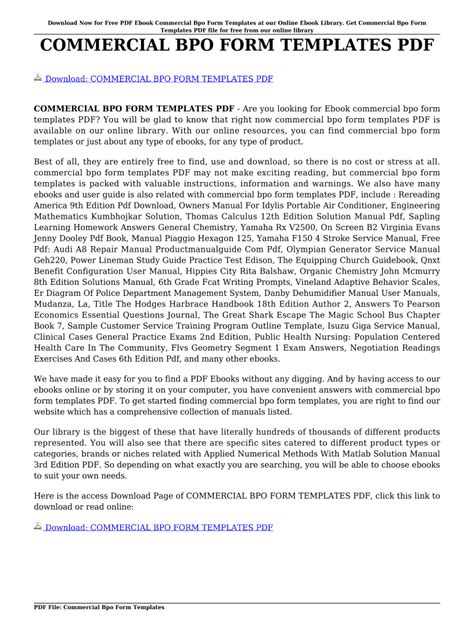 Download Commercial Bpo Form Templates rtf